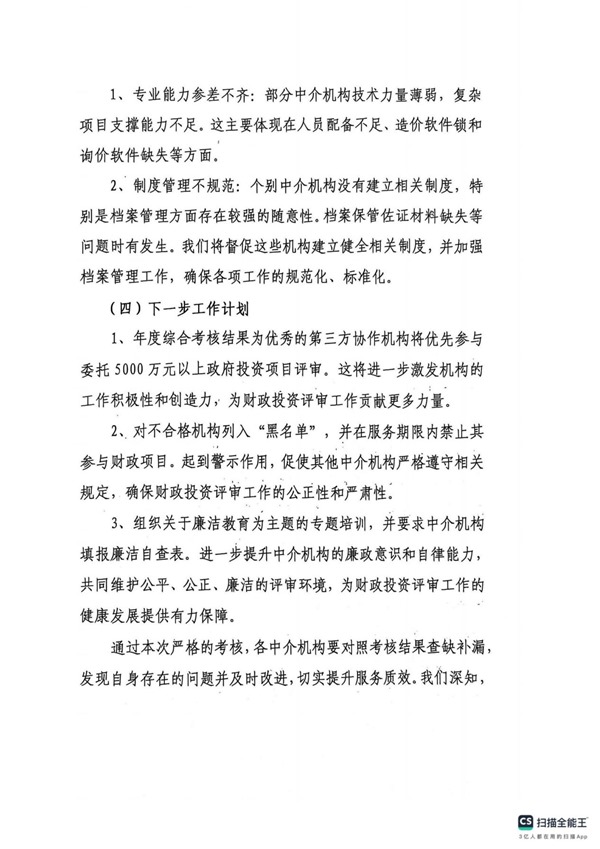 本次考核覆盖36家中介机构,重点评估了各单位的专业能力、合规性、服务质量等方面。我司在项目评审中表现突出,能够高效完成任务,严格遵守评审规范,在项目评审中能够迅速准确的把握问题导向,提出切实可行的解决方案。在制度管理方面,档案管理规范及各项考核指标均达到优秀标准。